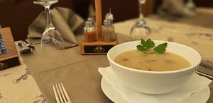 Jela još uvijek pripremaju u zidanom štednjaku na drva, prema tradiciji staroj 90 godina. Od vina toče crvena i bijela vina, crveno burgundac kao autohtonu sortu, a od bijelog nude tzv. kupažu, domaće vino koje se radi od tri sorte grožđa, 10 posto muškata, 30 posto graševine, a ostalo čini sauvignon. Ima svoju specifičnost i pretežno se pije s mineralnom, popularni gemišt.